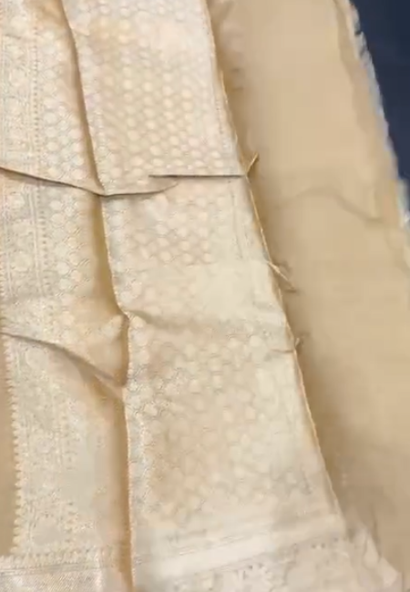 The fabric combines the lightness of cotton with the subtle sheen of silk, offering both comfort and grandeur. Its equal fancy borders and fine zari detailing reflect impeccable Banarasi artistry, making it ideal for festive occasions, weddings, or elegant gatherings.