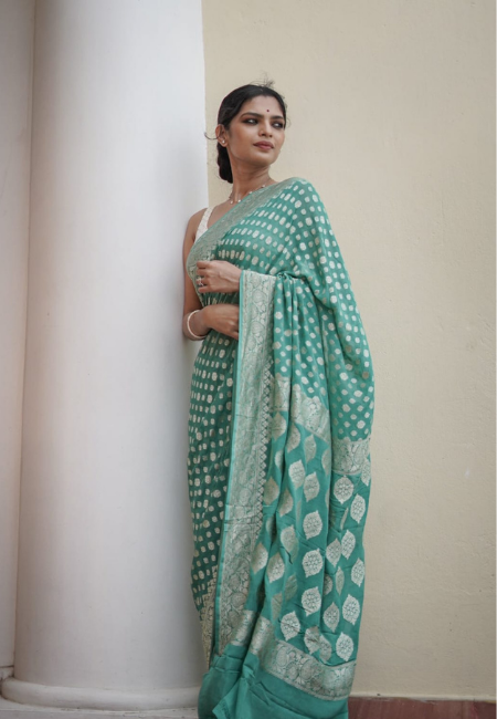 - Work: Golden Woven Motifs with Zari Border
